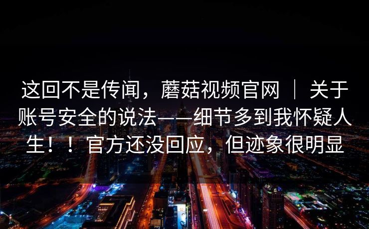 这回不是传闻,蘑菇视频官网 | 关于账号安全的说法——细节多到我怀疑人生!!官方还没回应,但迹象很明显